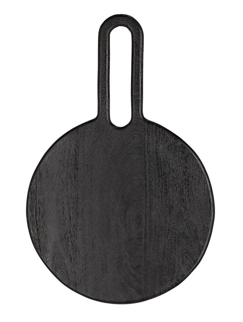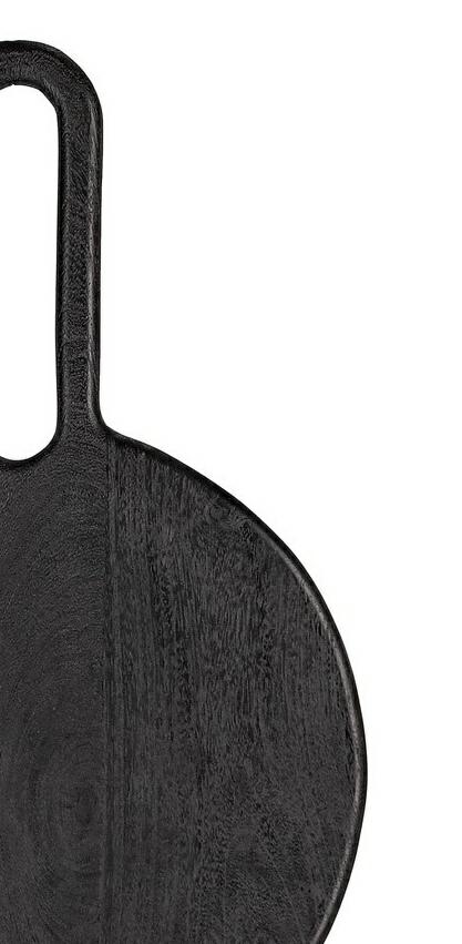 Deskę wykonano z drewna mango, które wyróżnia się trwałością i unikalnym, naturalnym usłojeniem widocznym pod czarnym wykończeniem.