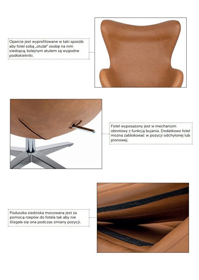 przez znanych projektantów. Fotel wyposażony jest w mechanizm obrotowy z funkcją bujania.