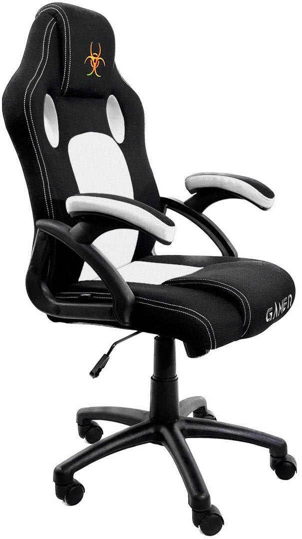 Fotel obrotowy, dla gracza, do biurka – CARRERA WHITE FABRIC rozmiar M