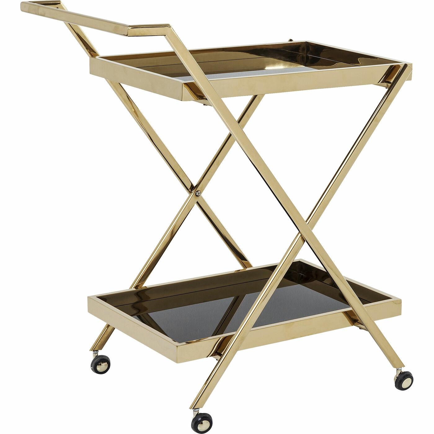Elegancki, złoty wózek barowy w stylu retro, który doskonale sprawdzi się w każdym wnętrzu.