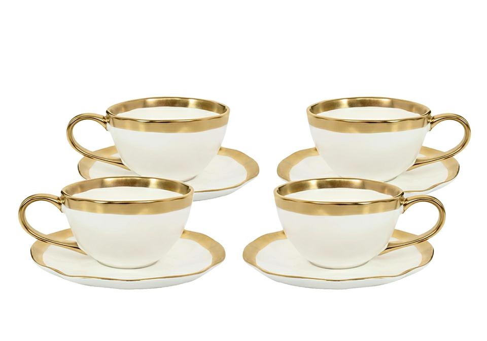 KARE komplet 4 filiżanek BELL biało-złoty.