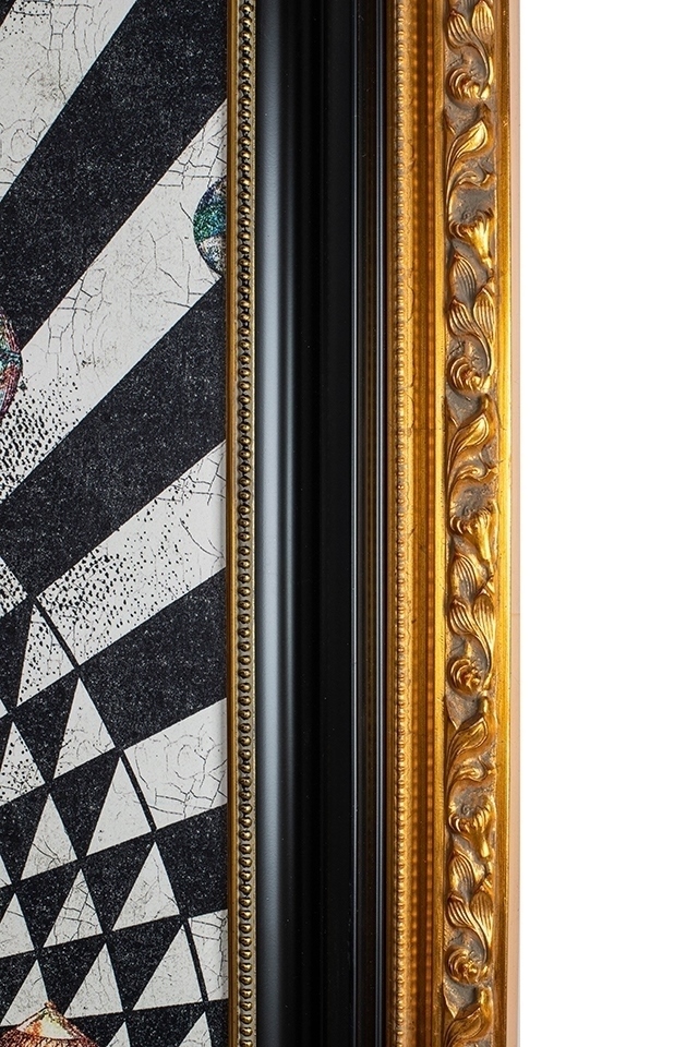 Całość wykonano w biało-czarnej kolorystyce połączonej z kolorowymi akcentami i wydrukowano na wysokiej jakości papierze artystycznym, następnie oprawiono w elegancką czarno-złotą ramę z drewna sosnowego.