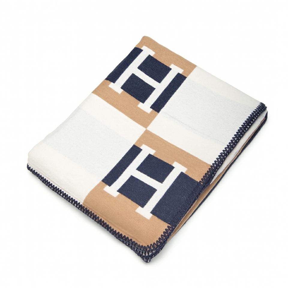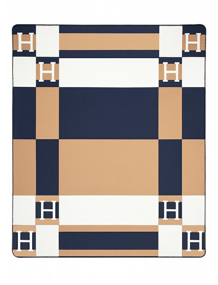 Wyróżnia się nowoczesnym wzorem w geometryczne bloki z literą „H” w narożnikach, które dodają mu charakteru i luksusowego stylu.