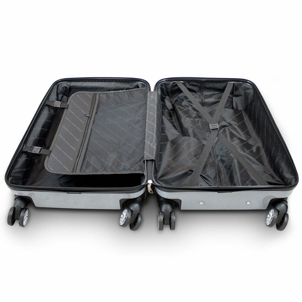 Walizki wykonane zostały z bardzo lekkiego i odpornego na uszkodzenia mechaniczne tworzywa, które charakteryzuje się dużą elastycznością oraz wytrzymałością. Wnętrze walizek wyłożone jest podszewką, która zabezpiecza bagaż przed wstrząsami i uderzeniami, a dodatkowe pasy mocujące pozwolą na zachowanie przedmiotów w tym samym miejscu. Każda z walizek dodatkowo wyposażona jest w zamki szyfrowe. Kółka obrotowe wykonane na łożyskach bardzo dobrze się prowadzą, dzięki temu walizki zapewniają komfort w podróży. UWAGA! Każda z walizek pokryta została folią zabezpieczającą, która docelowo powinna być zdjęta.