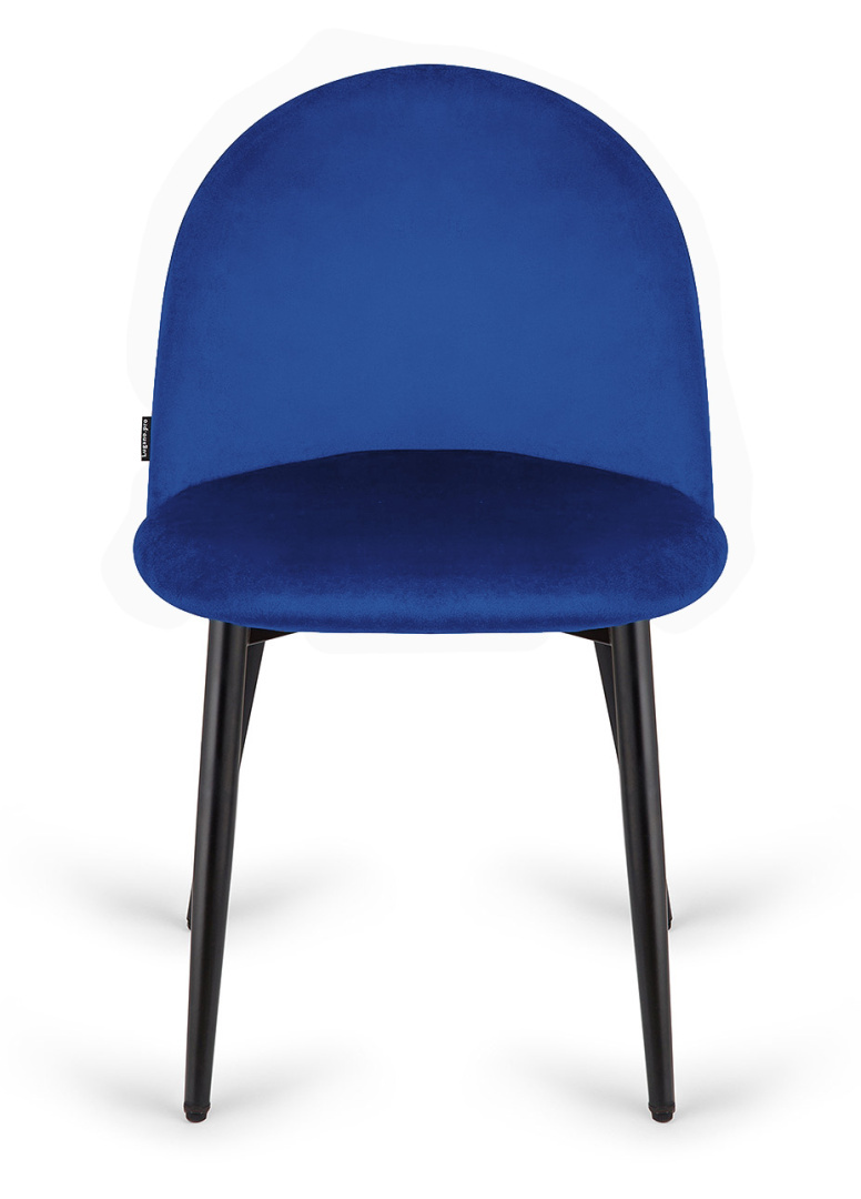 Nowoczesne, solidne i wygodne krzesło z oparciem, tapicerowane tkaniną welurową w kolorze niebieskim.