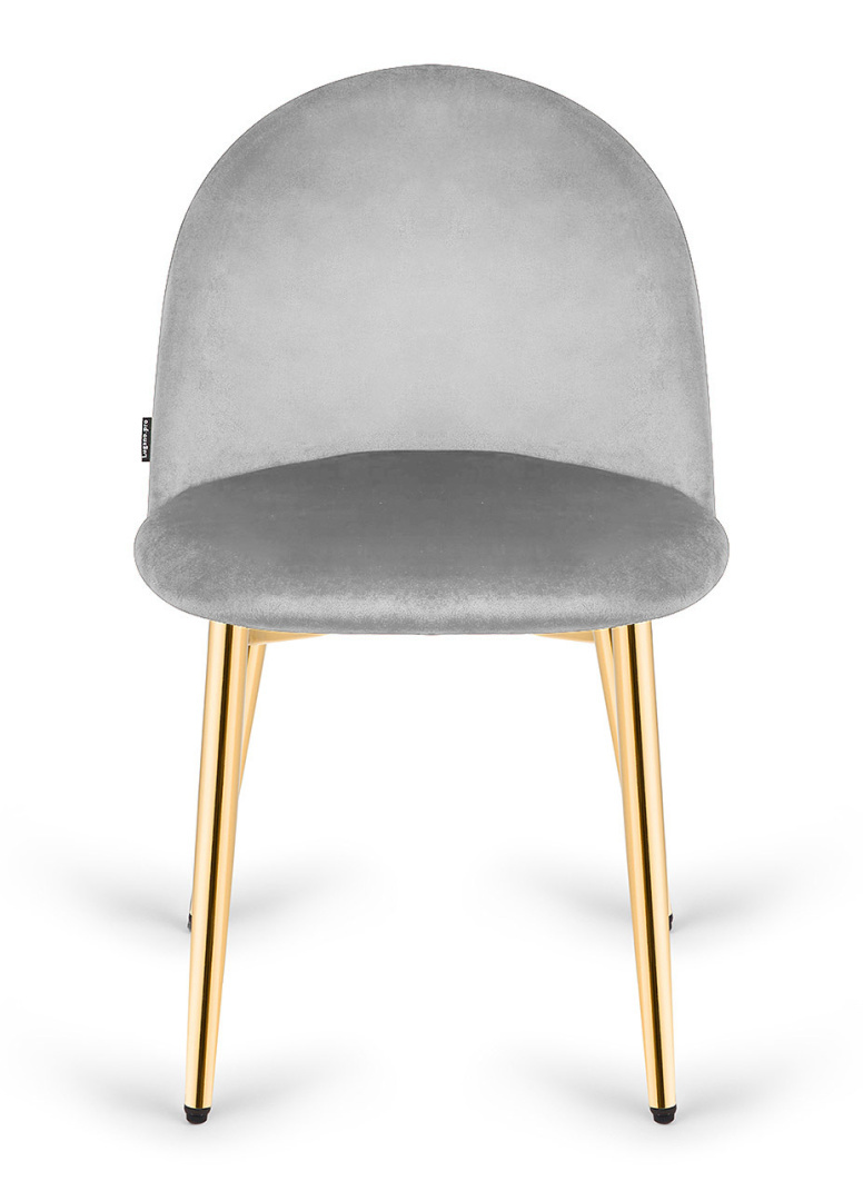 GLORIA GREY VELVET GOLD – Nowoczesne krzesło tapicerowane w kolorze jasnym szarym, z unikatowym wzorem na oparciu i złotych nogach.