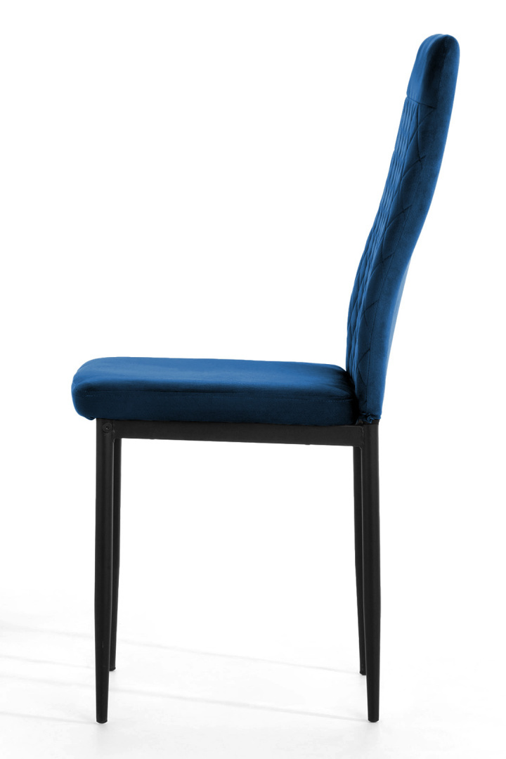 VALVA CARO – Nowoczesne krzesło tapicerowane tkaniną welur w kolorze niebieskim.