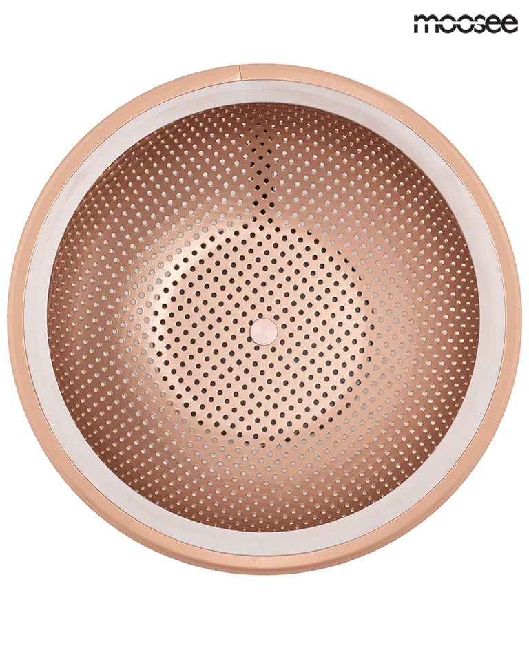 Oprawa wykonana jest z połączenia akrylu i aluminium w miedzianym kolorze.
