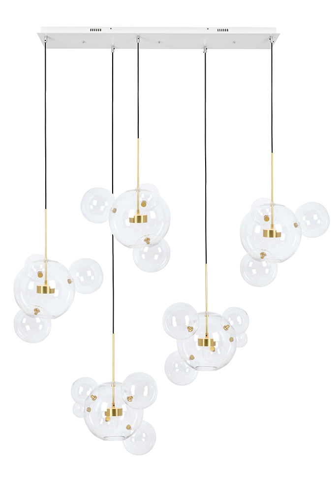 Pięć głównych kul zawieszonych zostało na przewodach, wychodzących z jednej podsufitki.