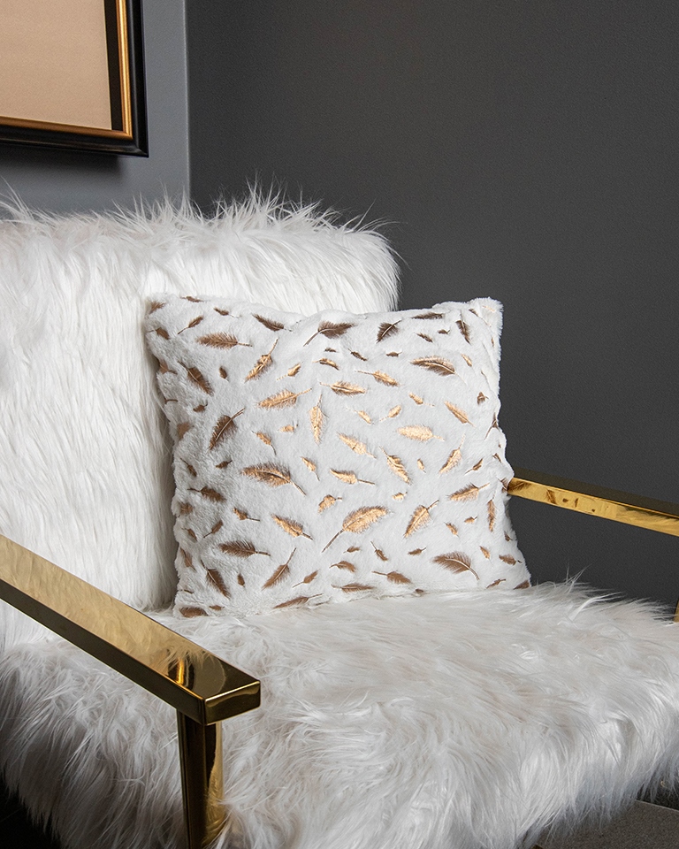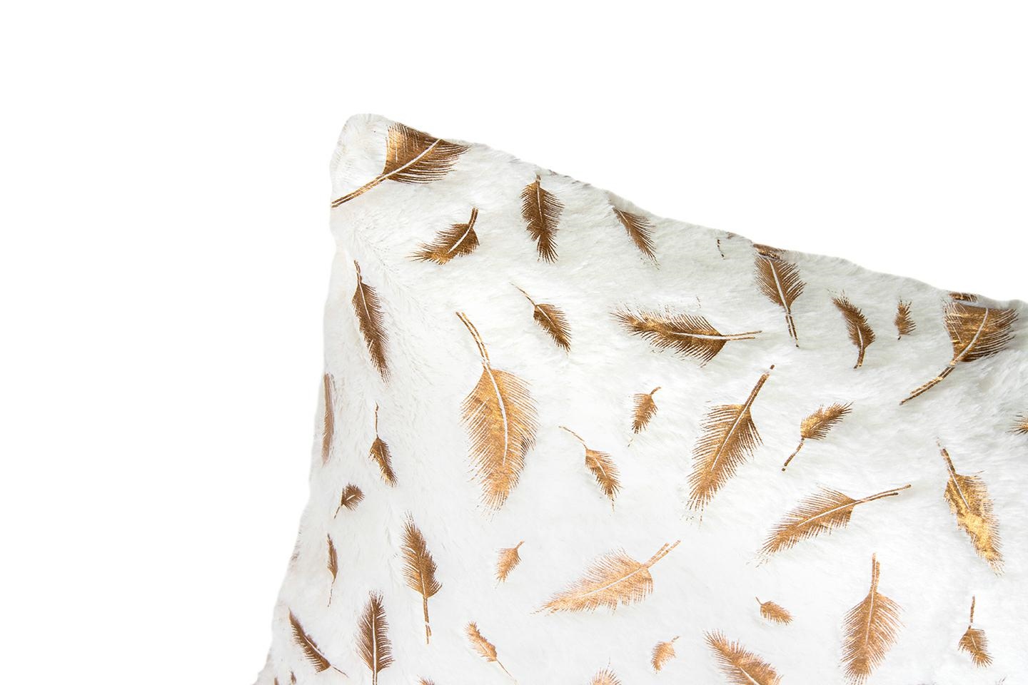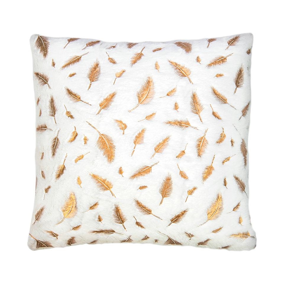 Puszysty, przyjemny w dotyku materiał poszewki został ozdobiony złotymi liśćmi, które nadają wyjątkowego uroku.