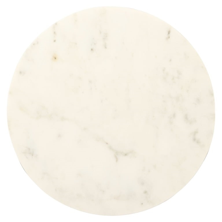Każdy stolik zbudowany jest z okrągłego blatu wykonanego z białego marmuru, który wnosi do pomieszczenia odrobinę luksusu i wyrafinowania.
