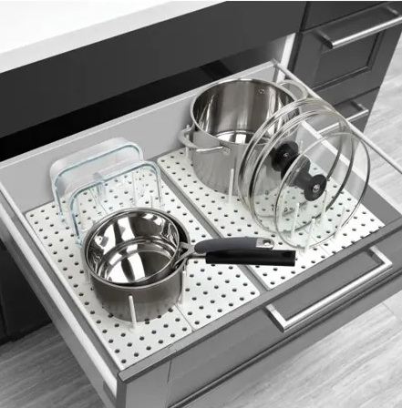 Dzięki niemu garnki, talerze, pojemniki i inne kuchenne akcesoria można utrzymać w perfekcyjnym porządku.