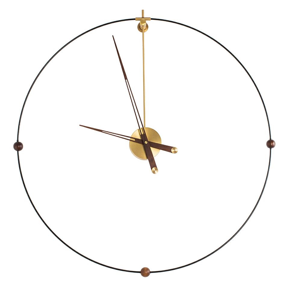 Czarną obręcz wykonano ze stali, a drewniane wskazówki oraz mosiężne elementy nadają zegarowi wyjątkowego charakteru w stylu Art Deco.